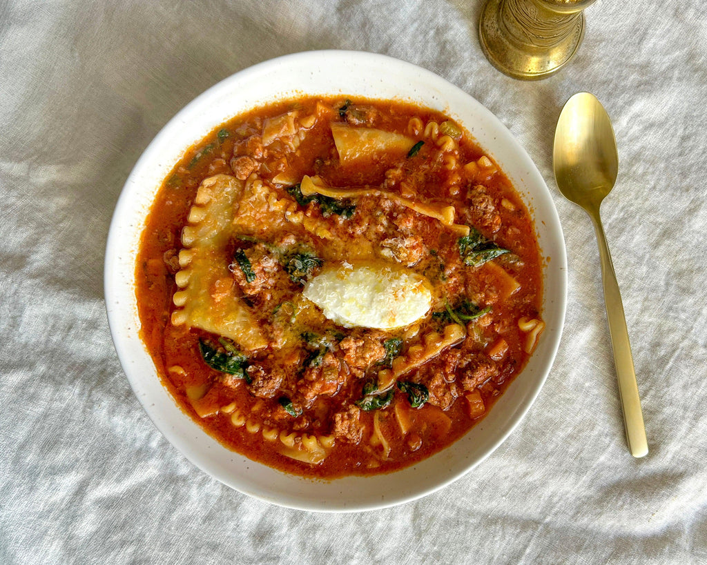 This Italian Lasagna Soup brings traditional family flavors to your bowl. It's the perfect blend of ground meat, Ciao Tomatoes, Lasagna and cheese.