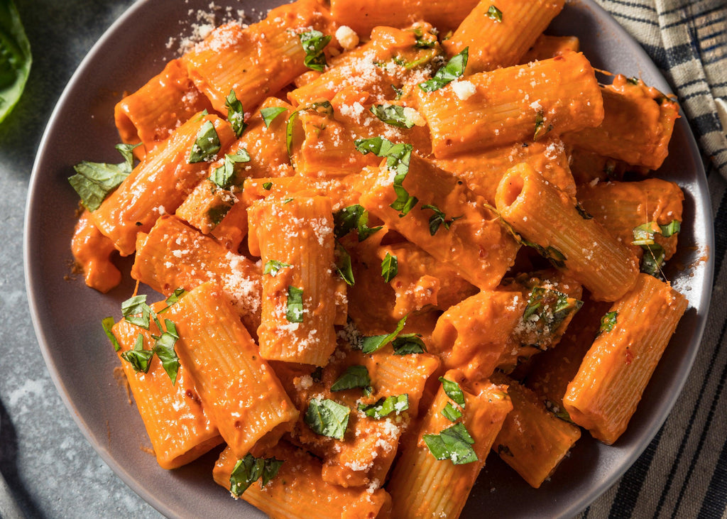 - Serve the pasta with 'Nduja Diavola Sauce, garnish with basil, and enjoy!