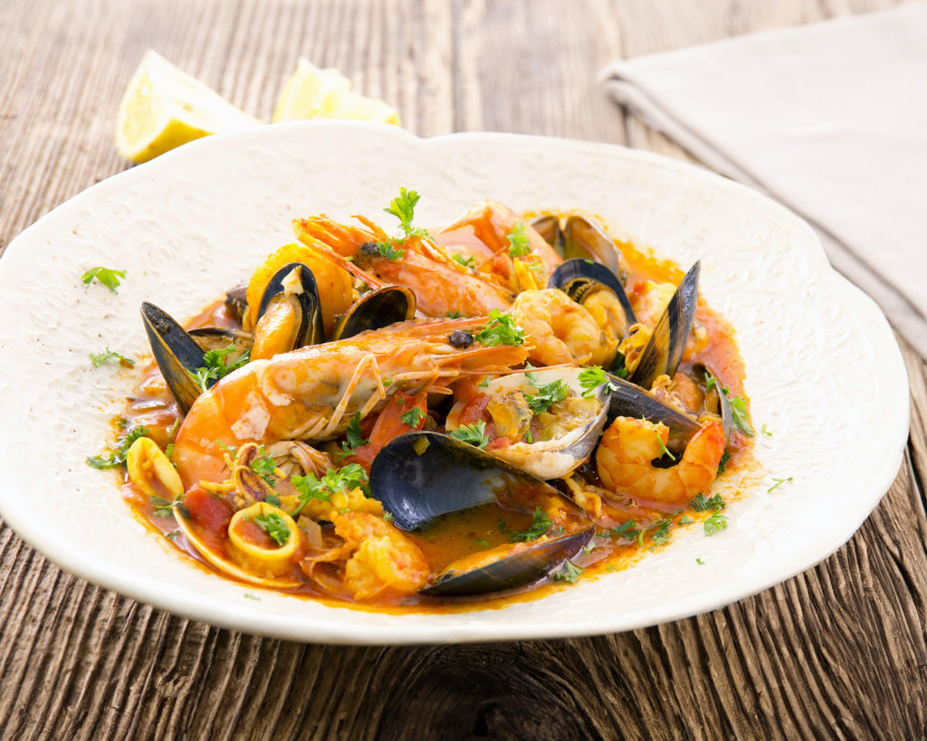 This Zuppa di Pesce recipe features a medley of fresh seafood simmered in a savory tomato broth with garlic and white wine, creating a flavorful and comforting Italian stew.